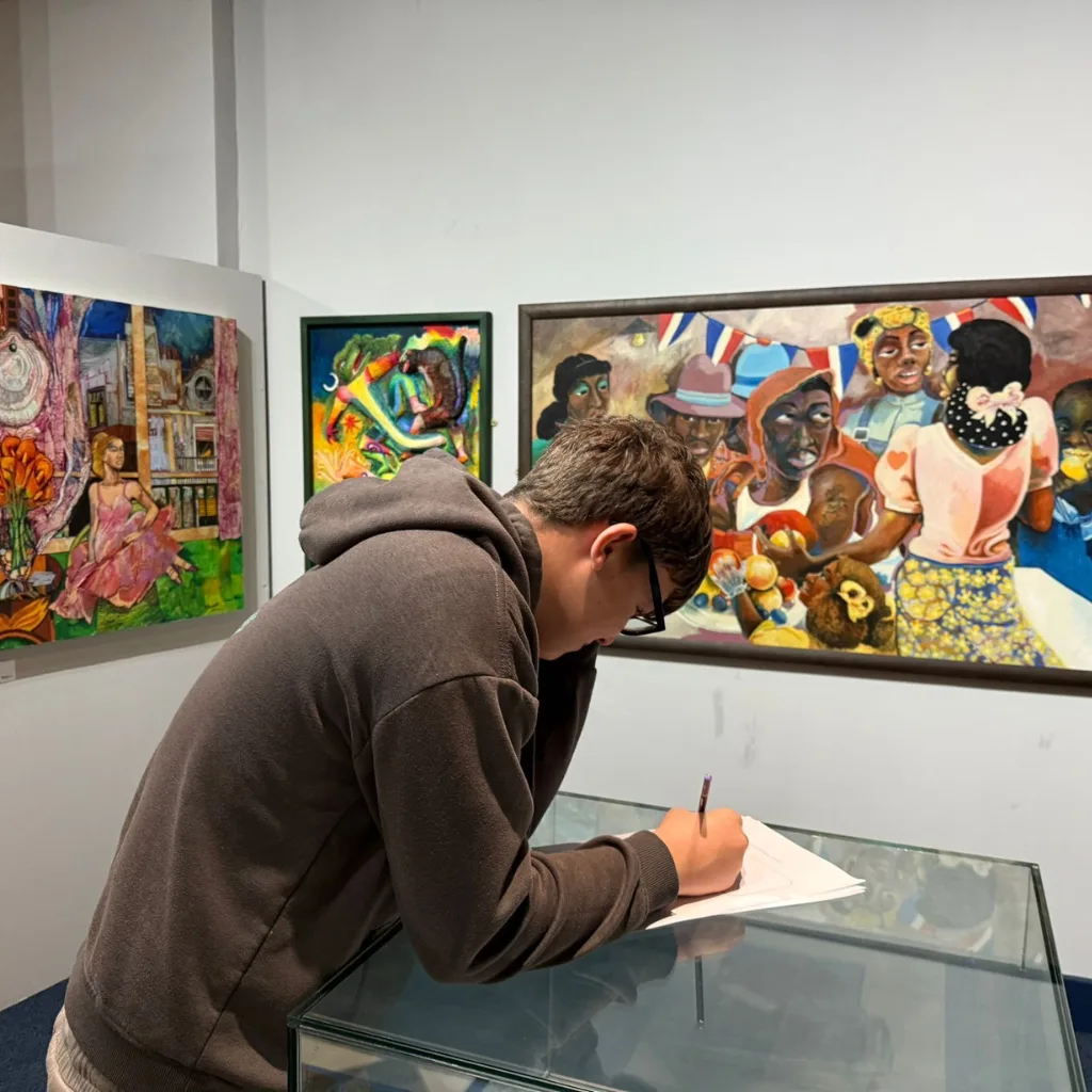 The students also explored local art created by people of Black heritage living in Stoke and Staffordshire, examining paintings, drawings, pottery, and blown glass. They discussed how these artists’ backgrounds influenced their work and shared their thoughts on which pieces resonated most with them and why. The artists explained how their heritage shaped their perspectives and creative expression, fostering meaningful conversations about identity and societal roles. Students then engaged in their own creative activities, including drawing interpretations of the artworks they had seen.