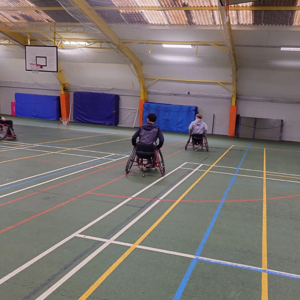 Andy brought to the session a number of wheelchairs and taught the students the basics of the game. He then organised a short match, enabling the students and staff to compete against each other. The students commented on how physically demanding it was and the effort needed to control the wheelchair. The students and staff struggled to co-ordinate the chair and scoring in the hoop. However, they rose to the challenge and enjoyed the game against each other. The red team eventually won, but with a little help from Andy himself!